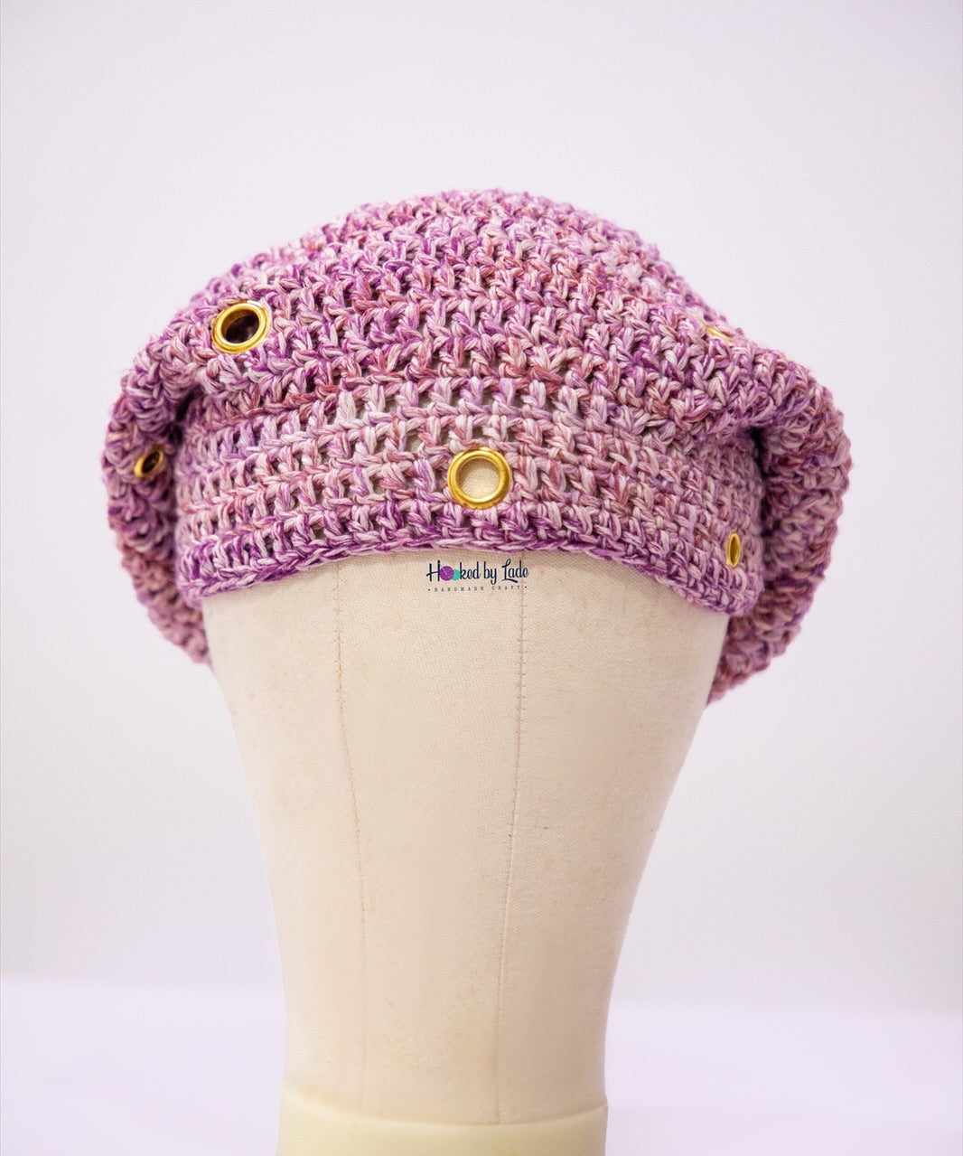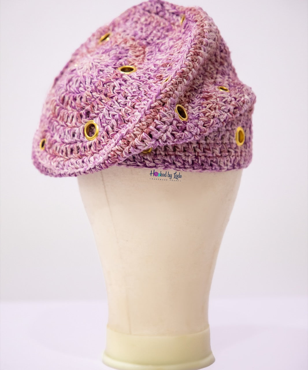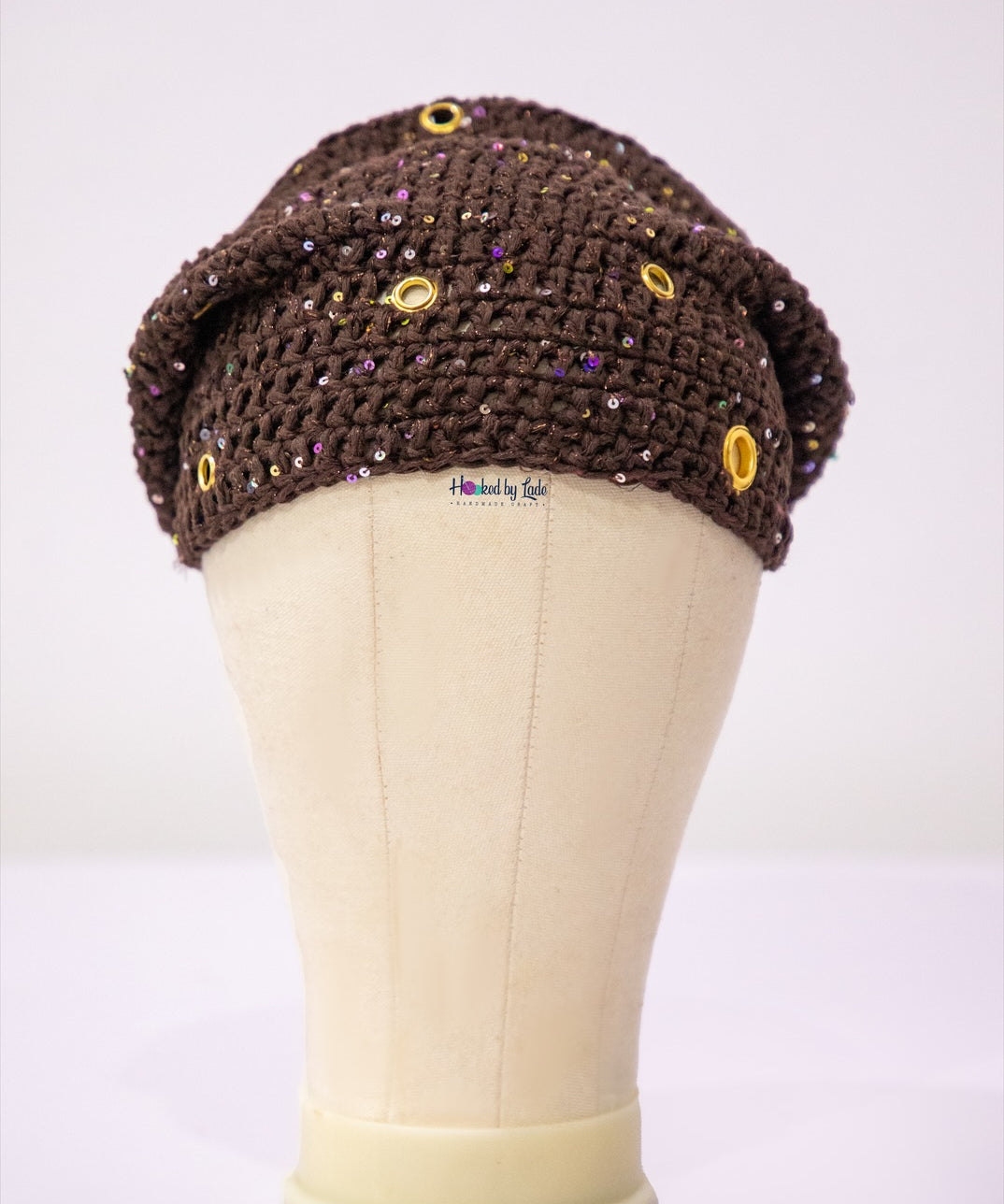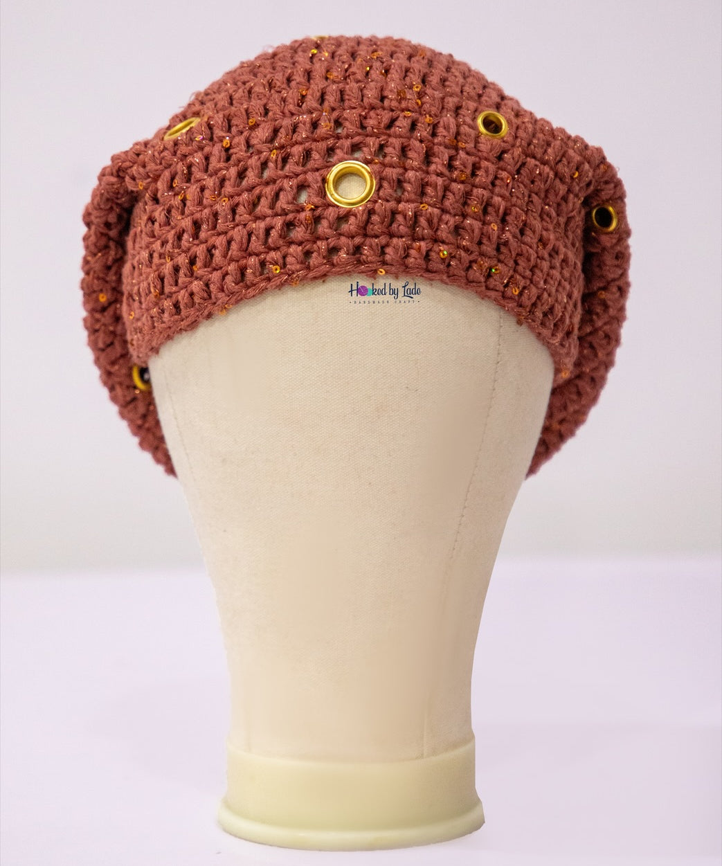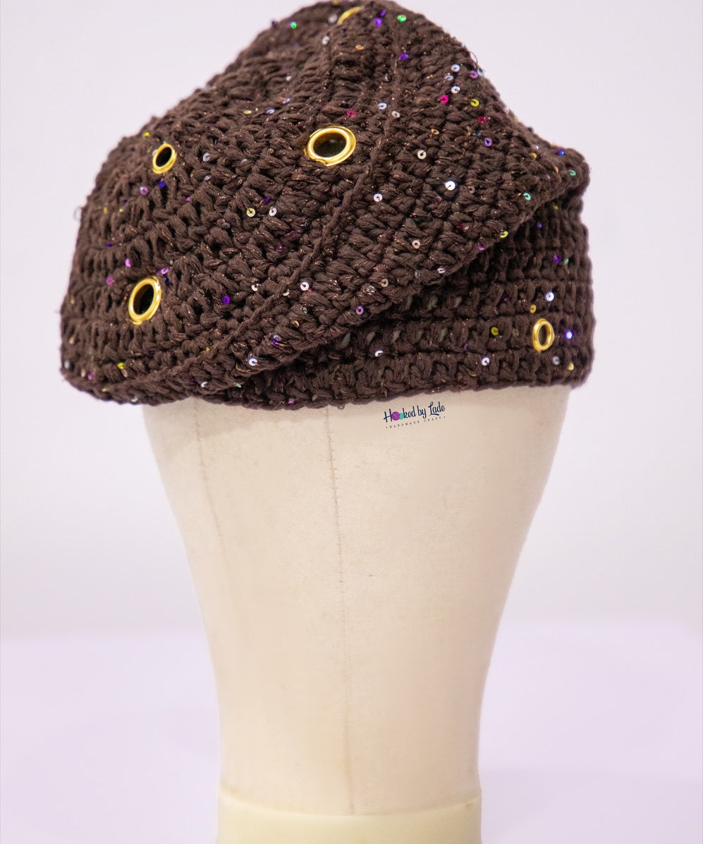 Crochet fìlà headpiece - Chocolate (Embellished with golden eyelets)