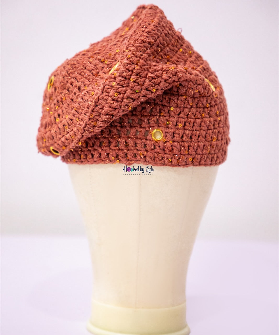 Crochet fìlà headpiece - Rust Orange (Embellished with golden eyelets)