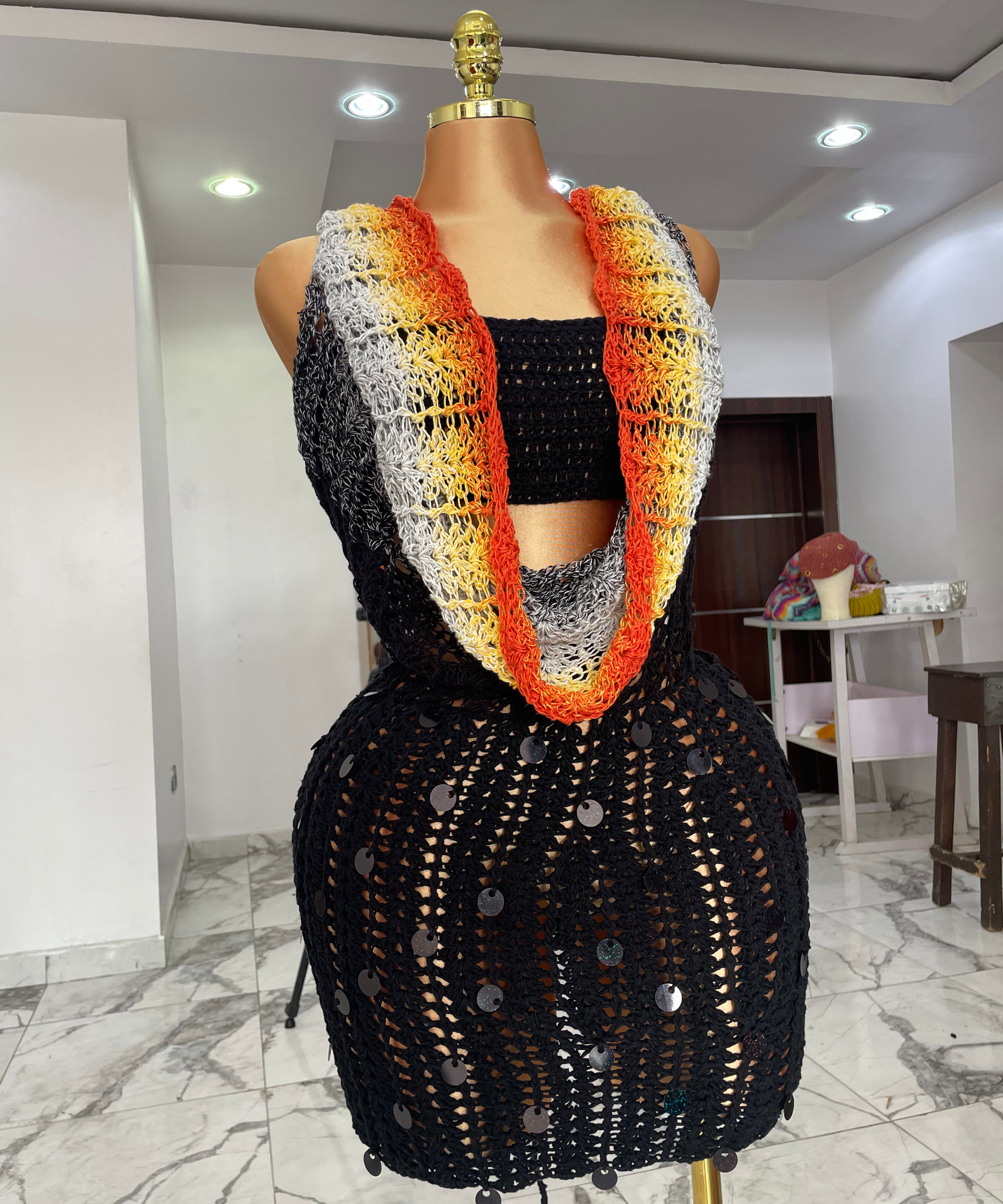 MAXI Butterscotch 'Damilola' beaded crochet set (Top and Skort only)