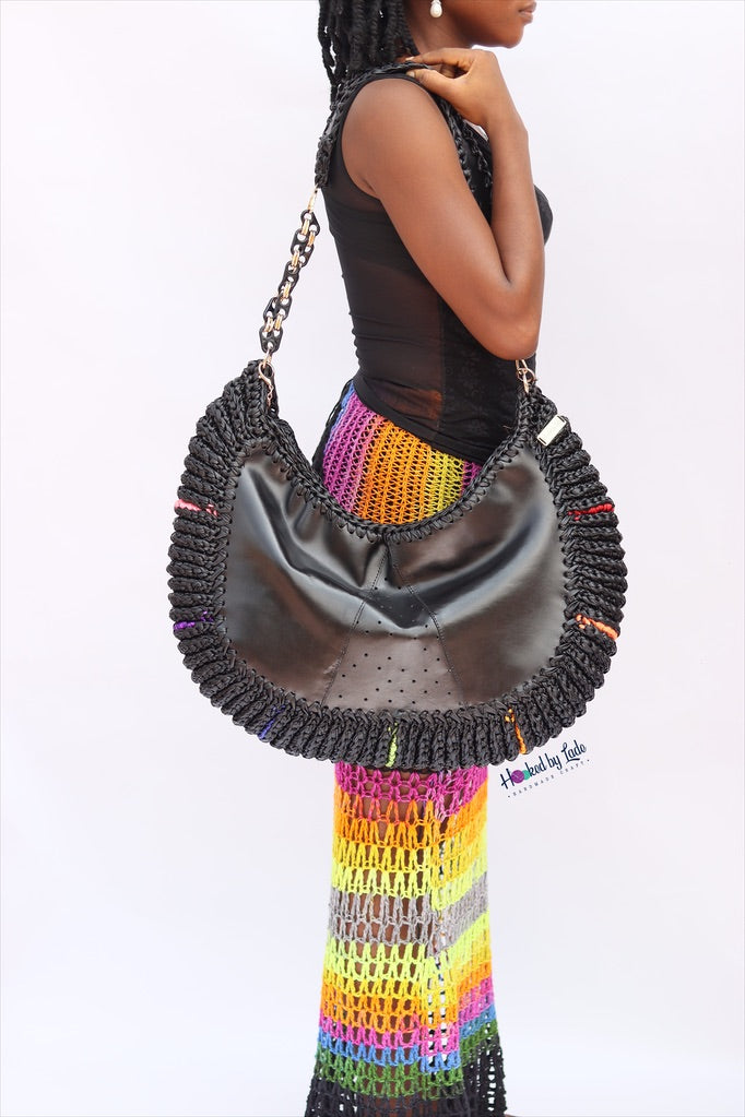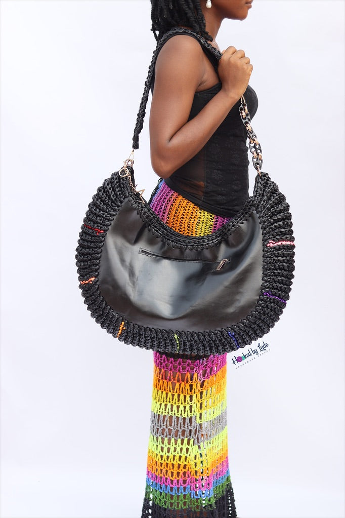 ‘Chidi’ Travel bag in Black leather and Rainbow Streak