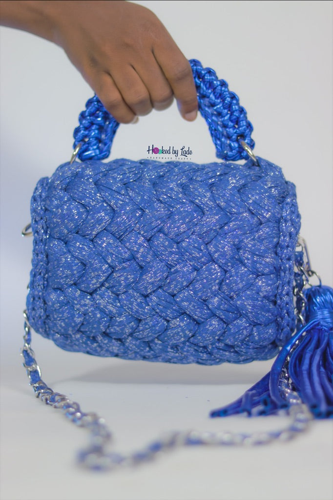 Glittery Royal Blue Crochet Bag - MIDI affair