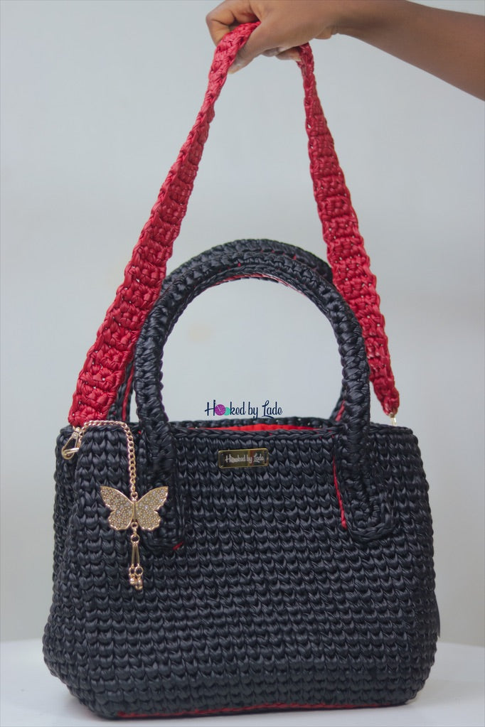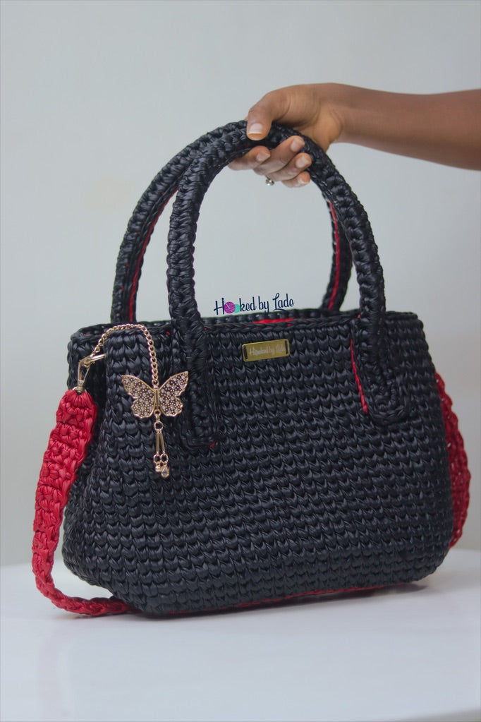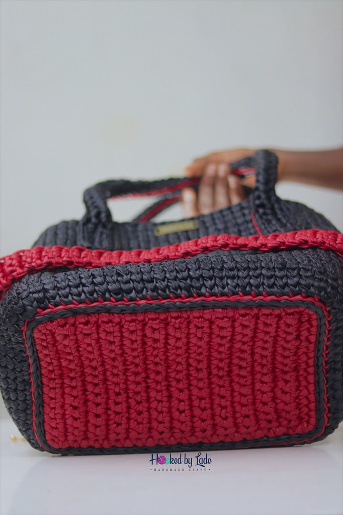 ‘Posi’ tote Crochet Bag in Black and Red highlight (medium)