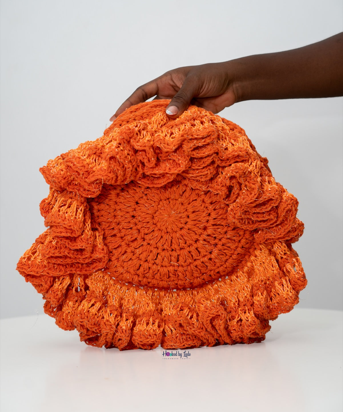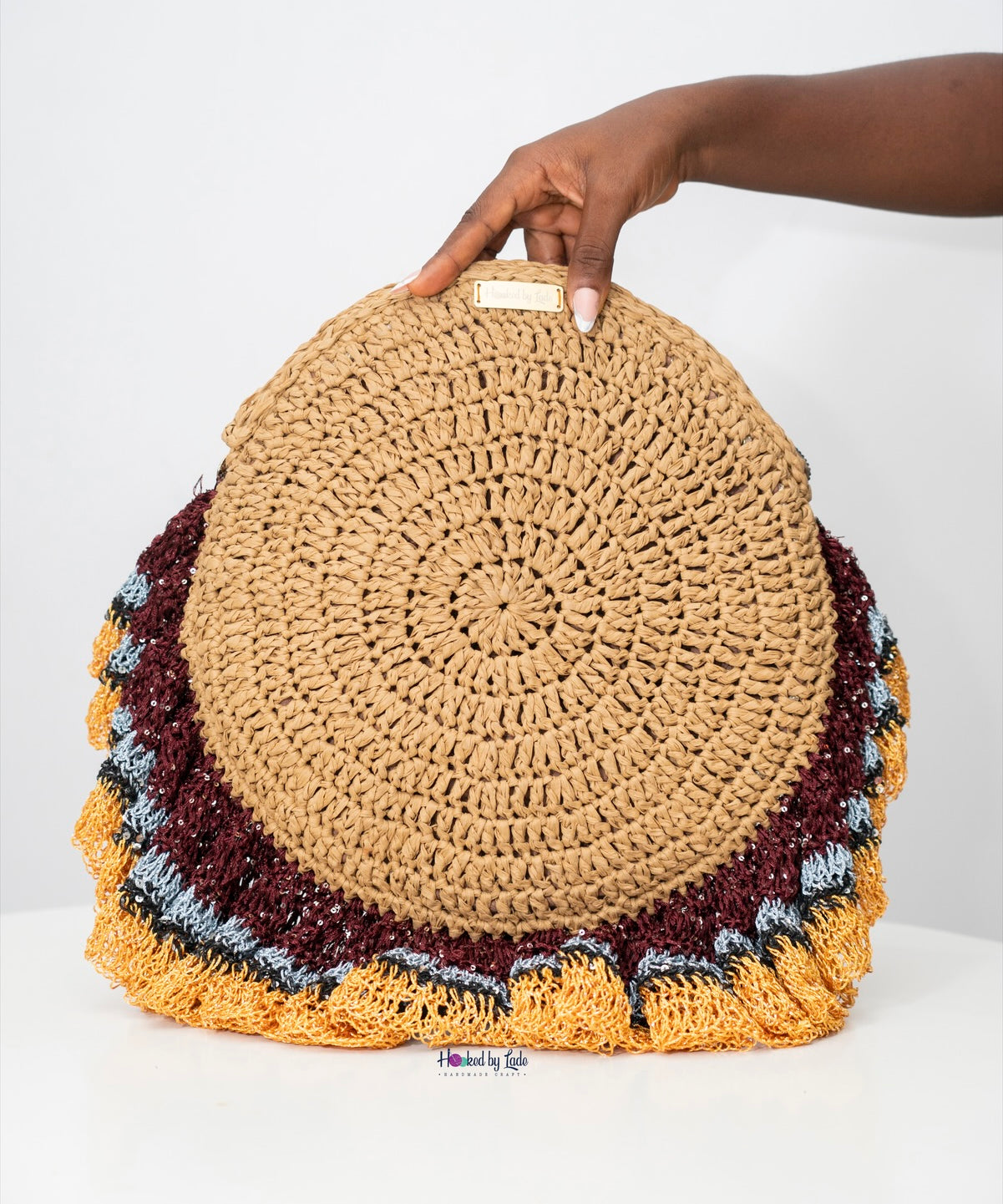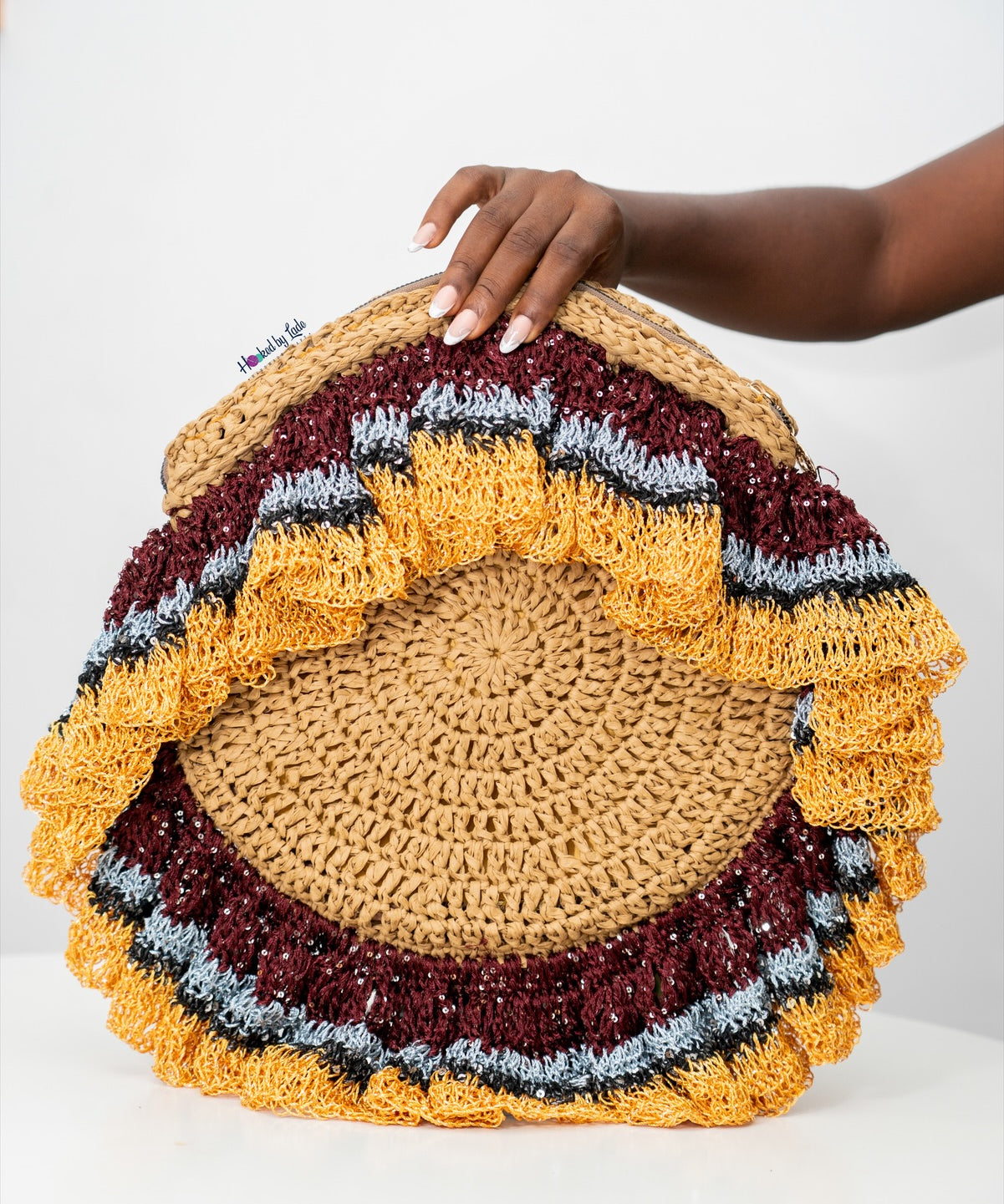 Abèbè Ruffle bloom (Raffia + Aso Oke themed colors) Large
