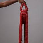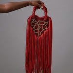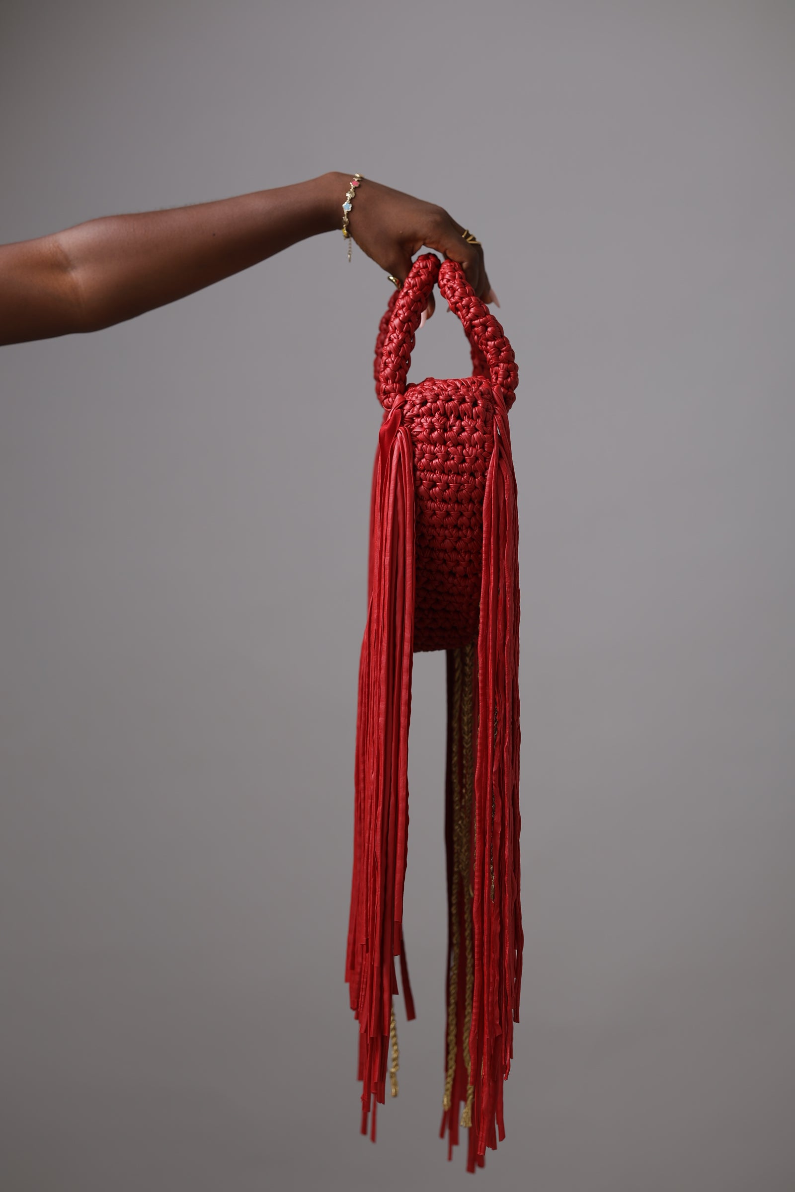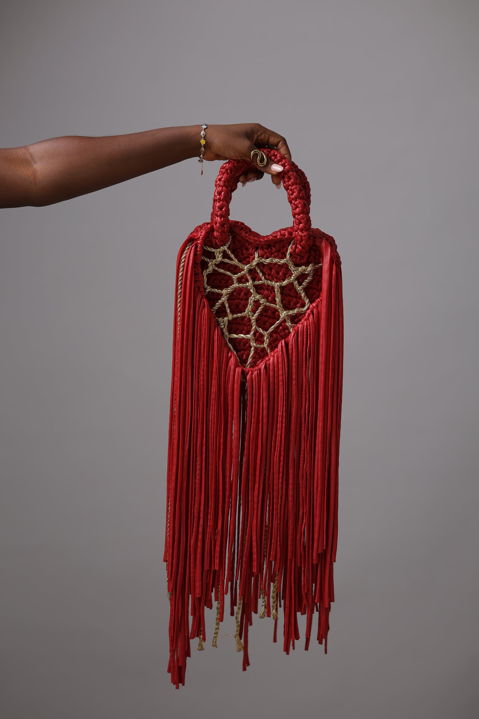 Color; Pepper red leather yarn tones with freehanded gold intertwine