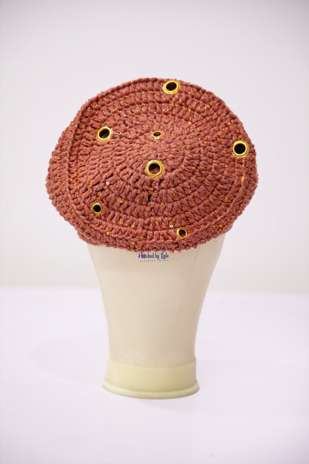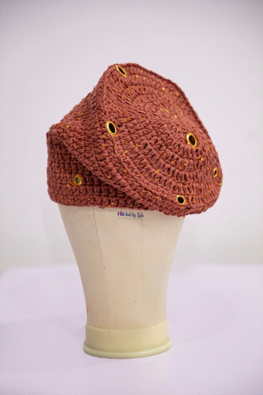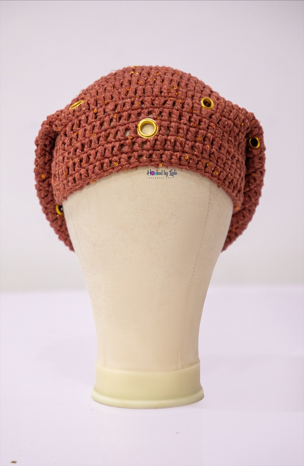 Crochet fìlà headpiece - Rust Orange (Embellished with golden eyelets)