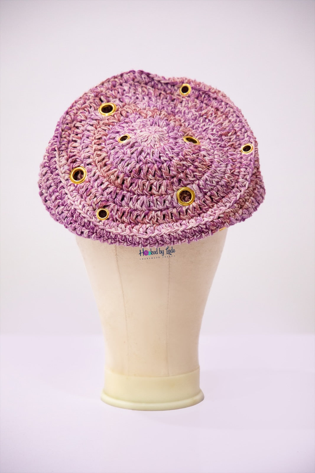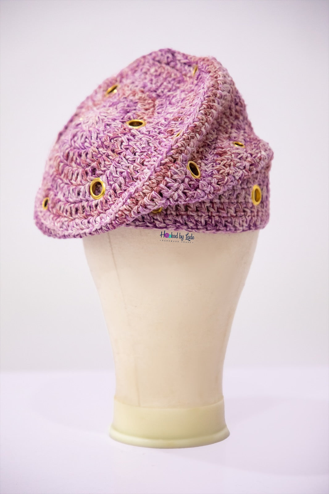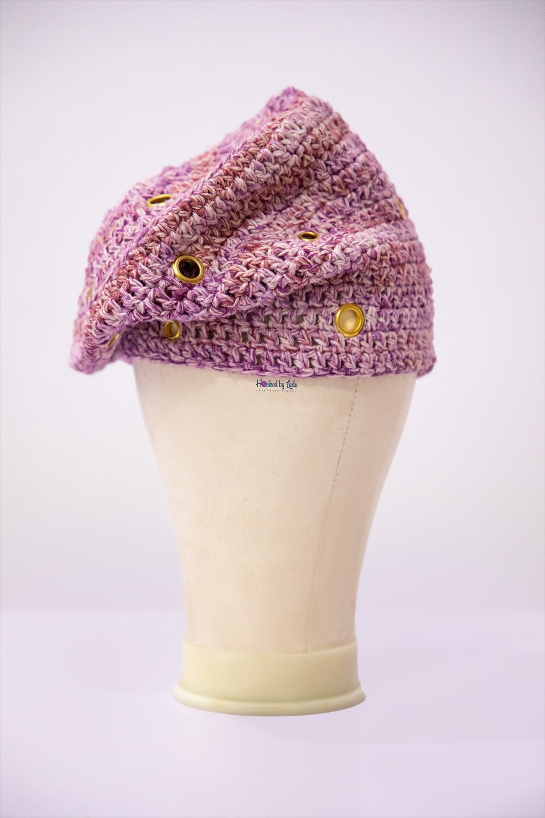 Crochet fìlà headpiece - Àdìre Wine (Embellished with golden eyelets)