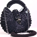 Color; Shades of Black (tshirt yarn and leather mix) with Black accessories/charm
