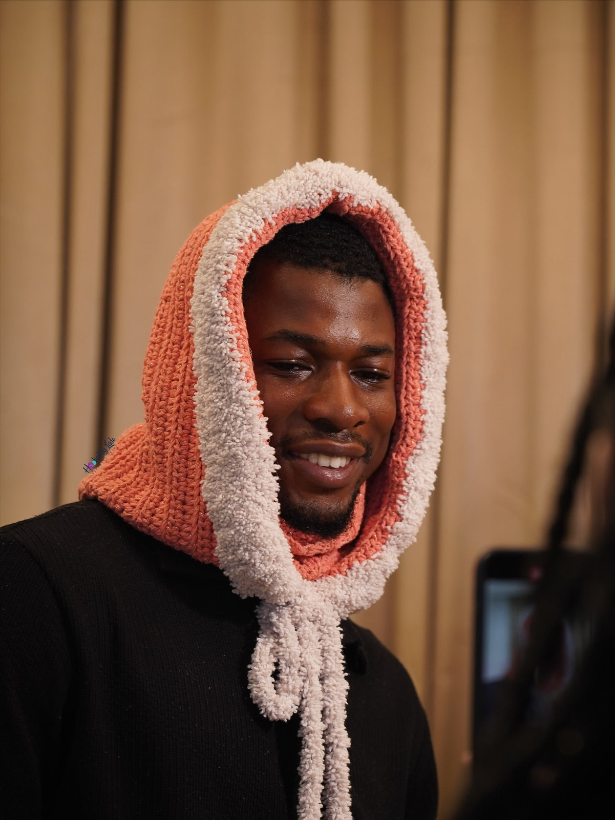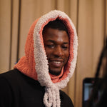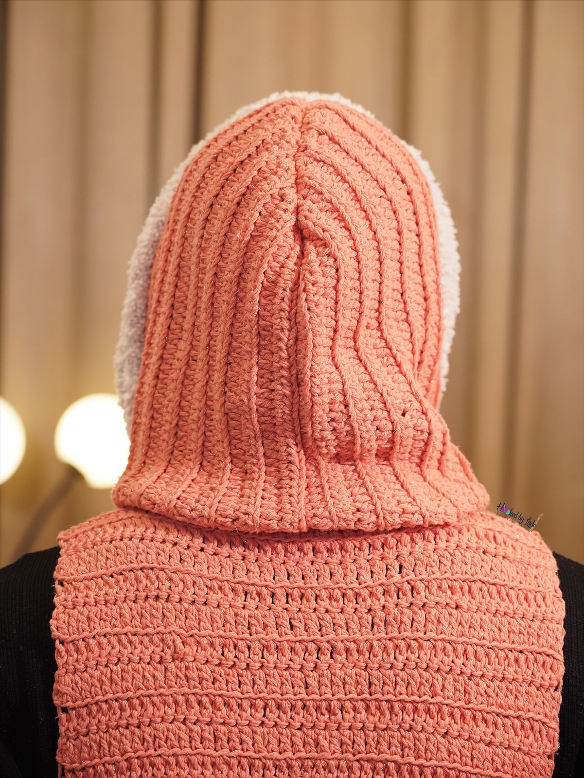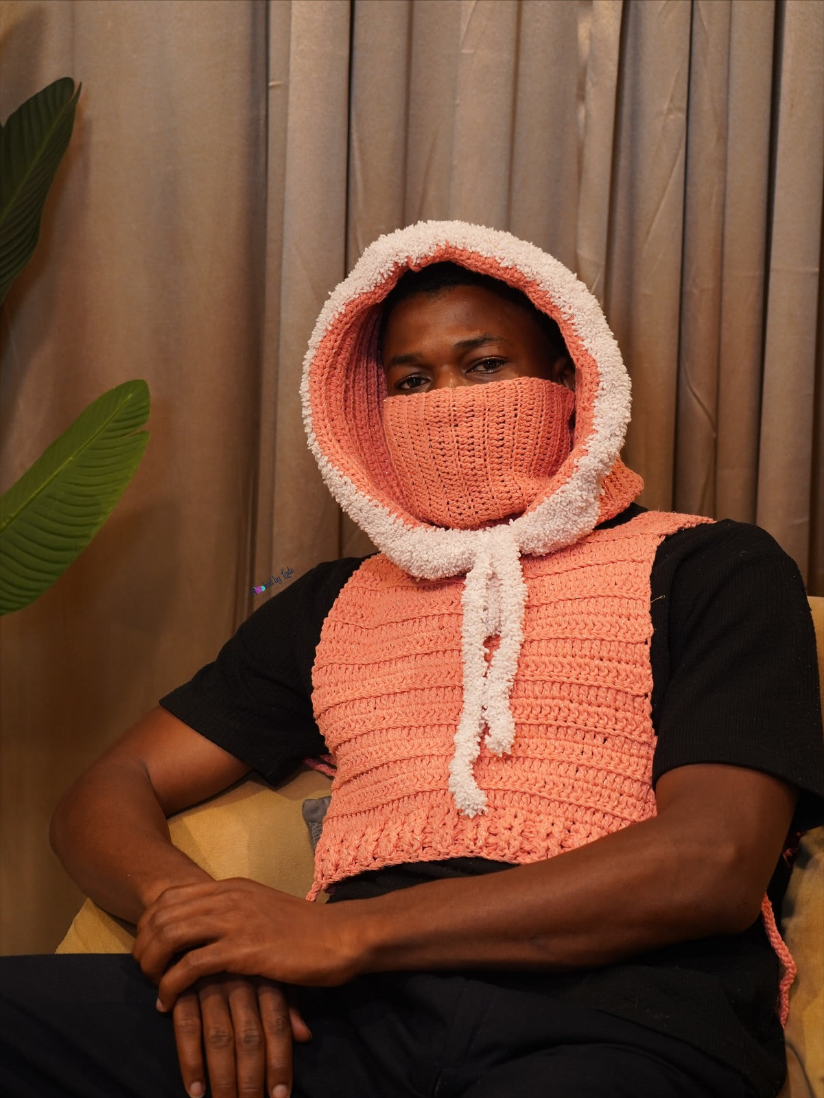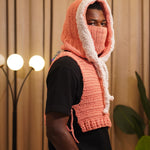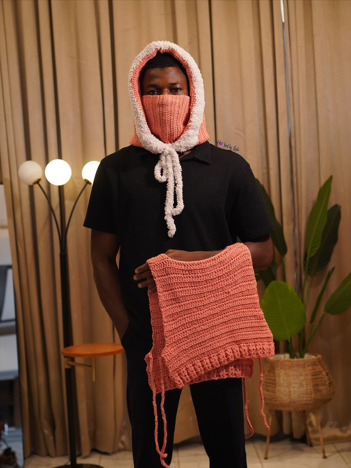 A snug unisex hood that cradles your head + a seamlessly built-in nose cover for those moments when the wind gets playful + a matching jacket to go, specially handmade with love in a peachy theme.