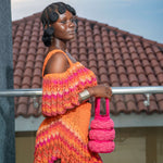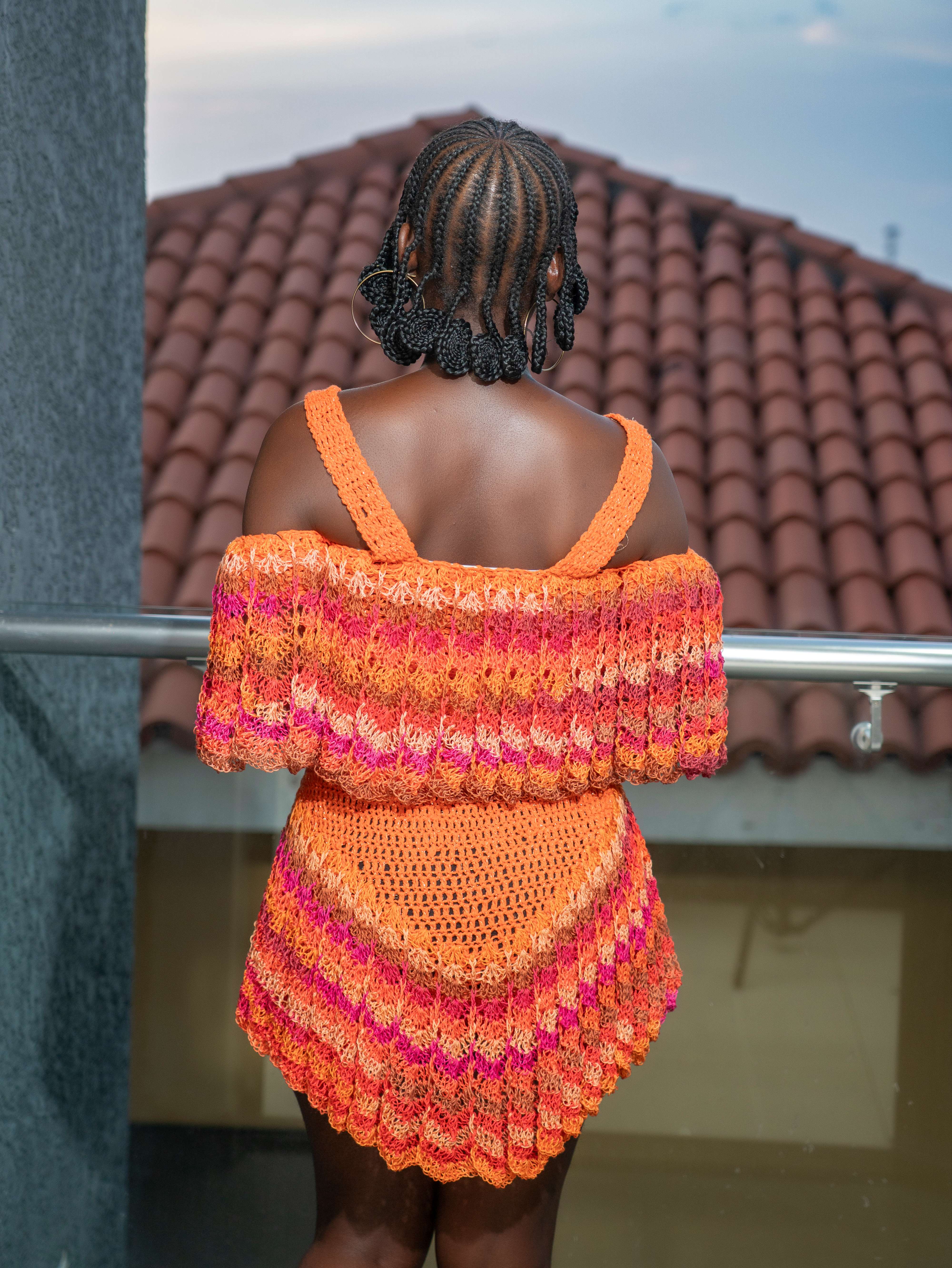 Orange ‘Damilola’ coldshoulder combo set (Comes with a Mini vine bag)